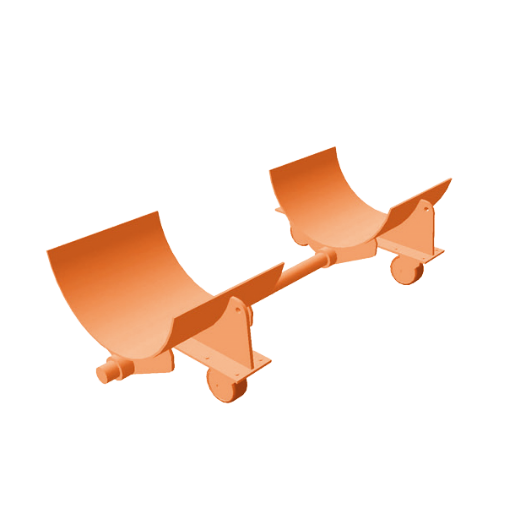 A wheeled device with either rubber faced circular or vee shaped receptacles to safely hold the repeater during cable operations.
